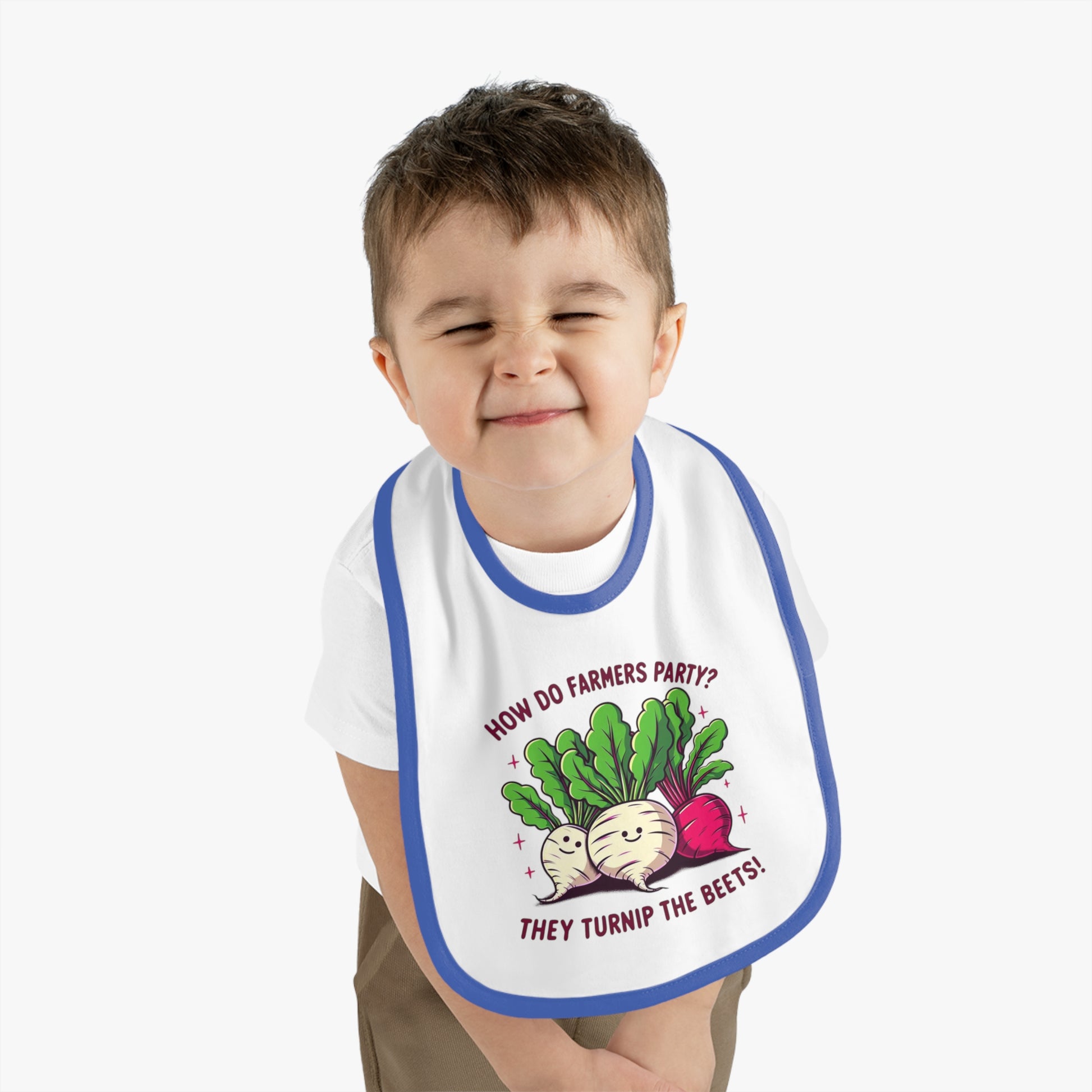 Baby Bib — "How Do Farmers Party? They Turnip the Beets!" Cute Veggie Pun